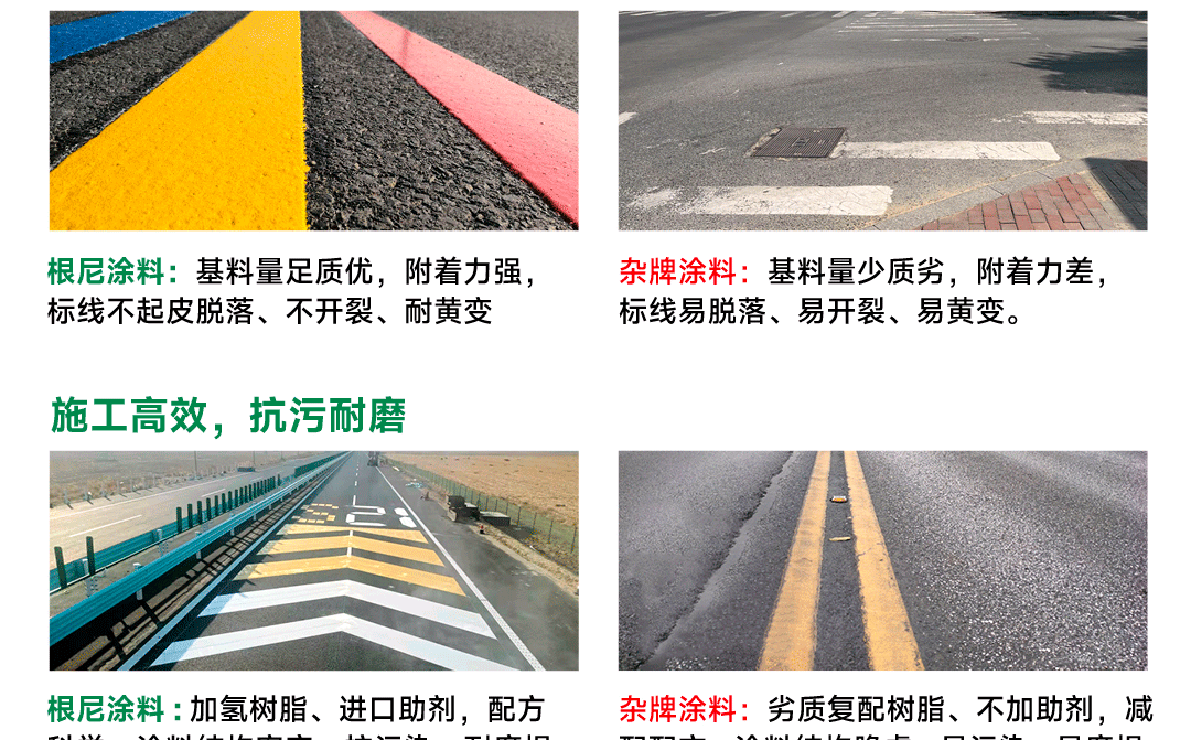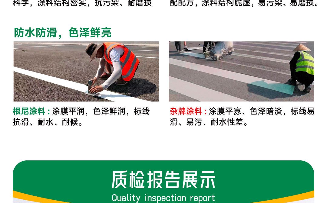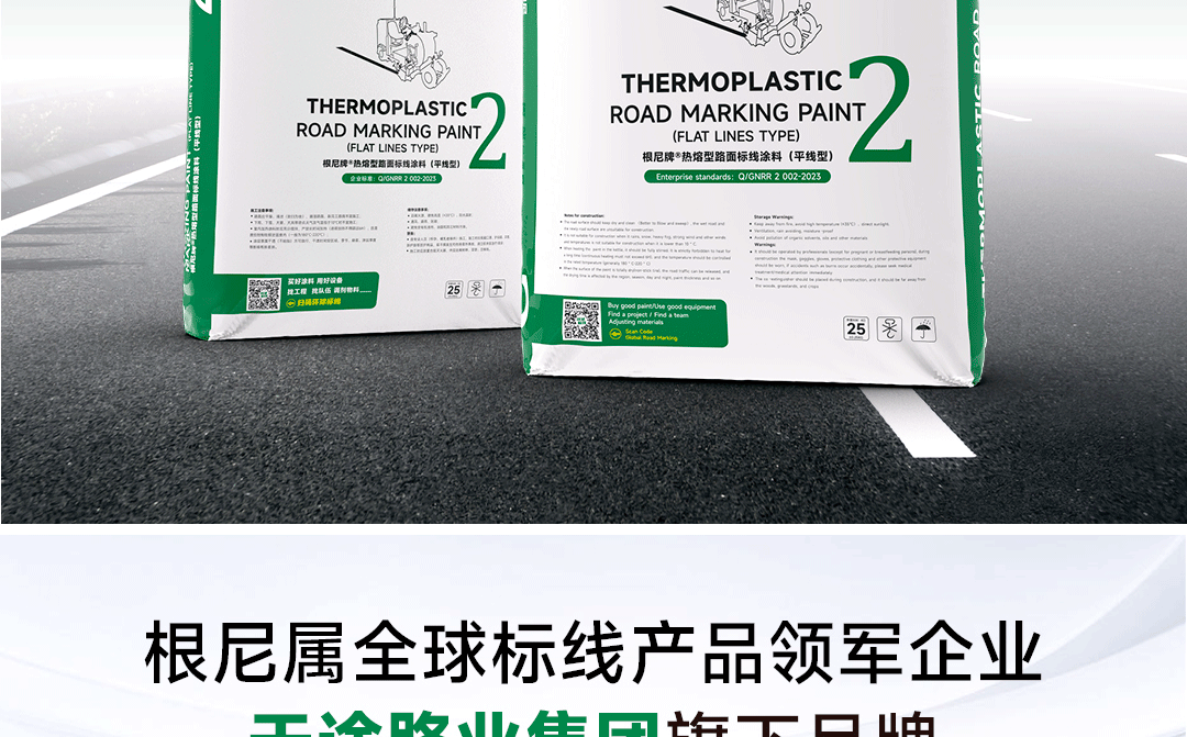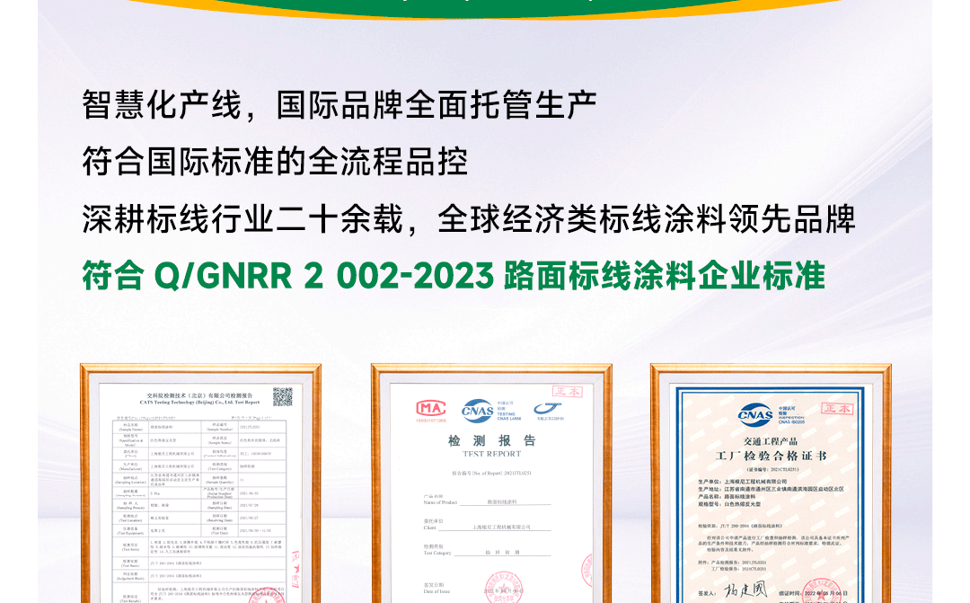 涂料特點:結構合理、混合均勻、質量一致性高 / 玻璃珠含量少 / 用途廣泛,使用方便。執行標準:中國交通部Q/GNRR 2 002-2023路面標線涂料標準;
