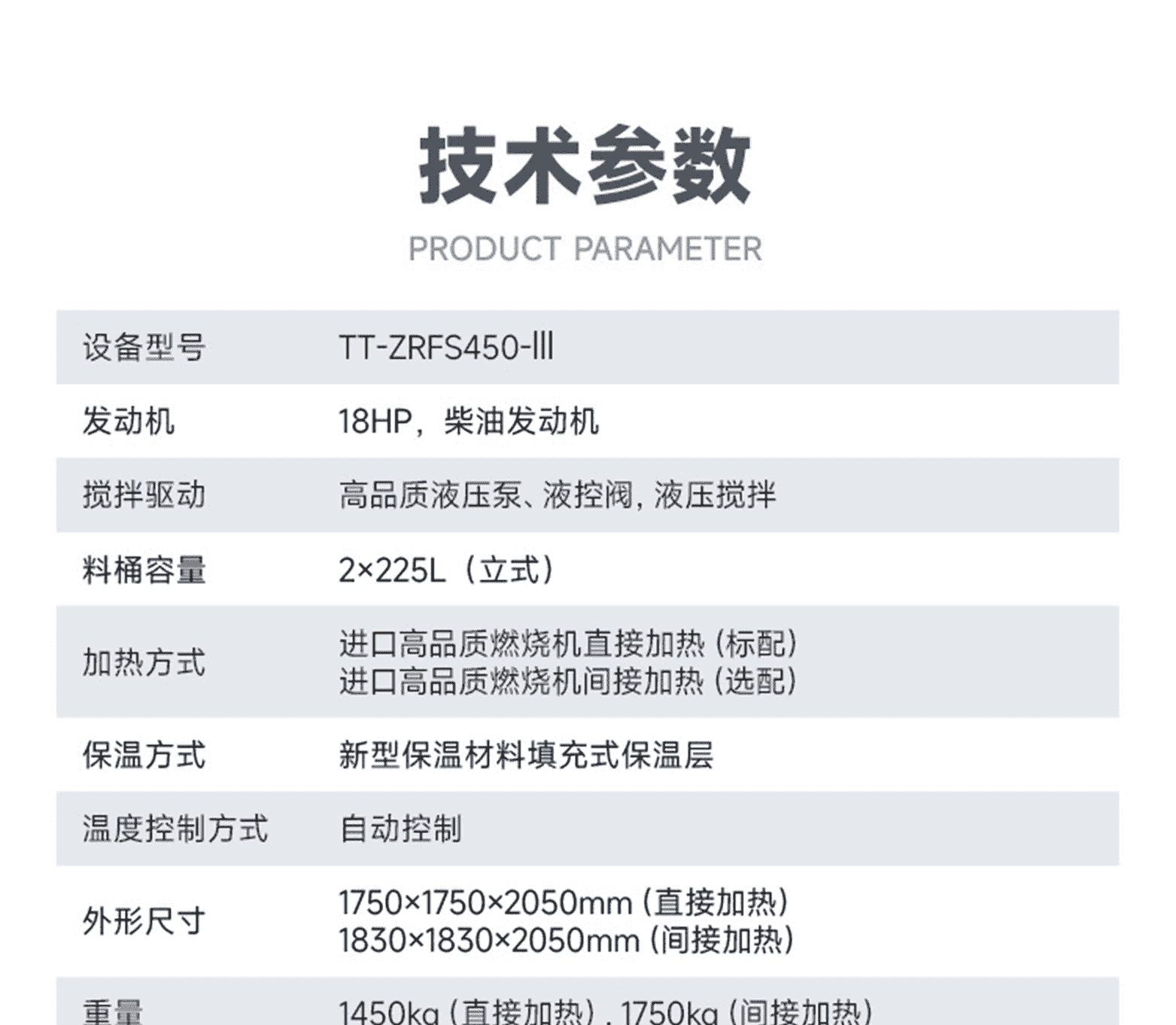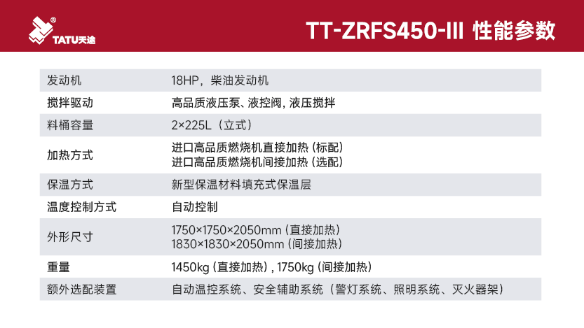 核心品質:高品質發動機和液壓元器件、進口燃燒機、加厚耐高溫抗變形材質料桶。主要特點:熔料效率高、作業性價比高