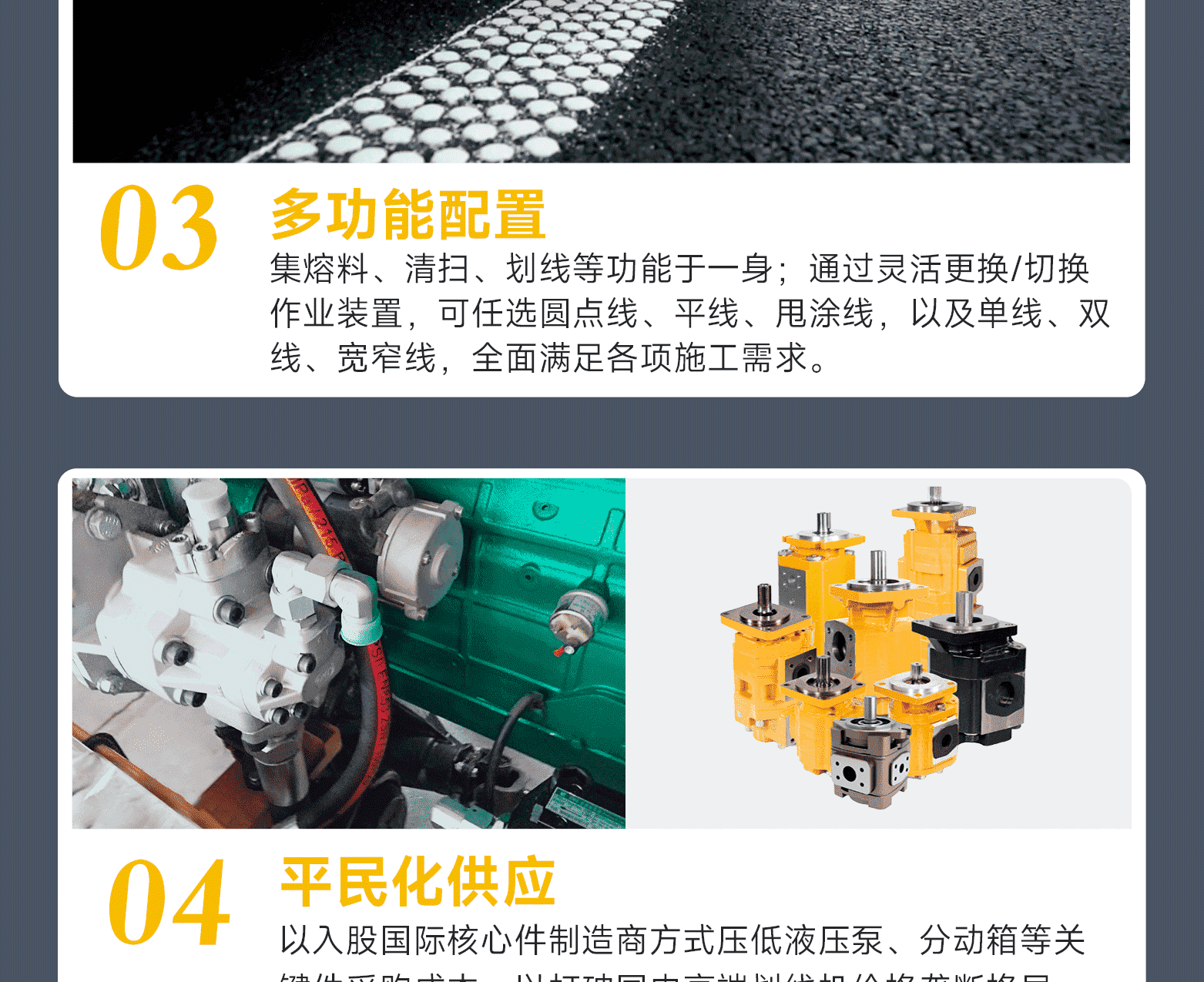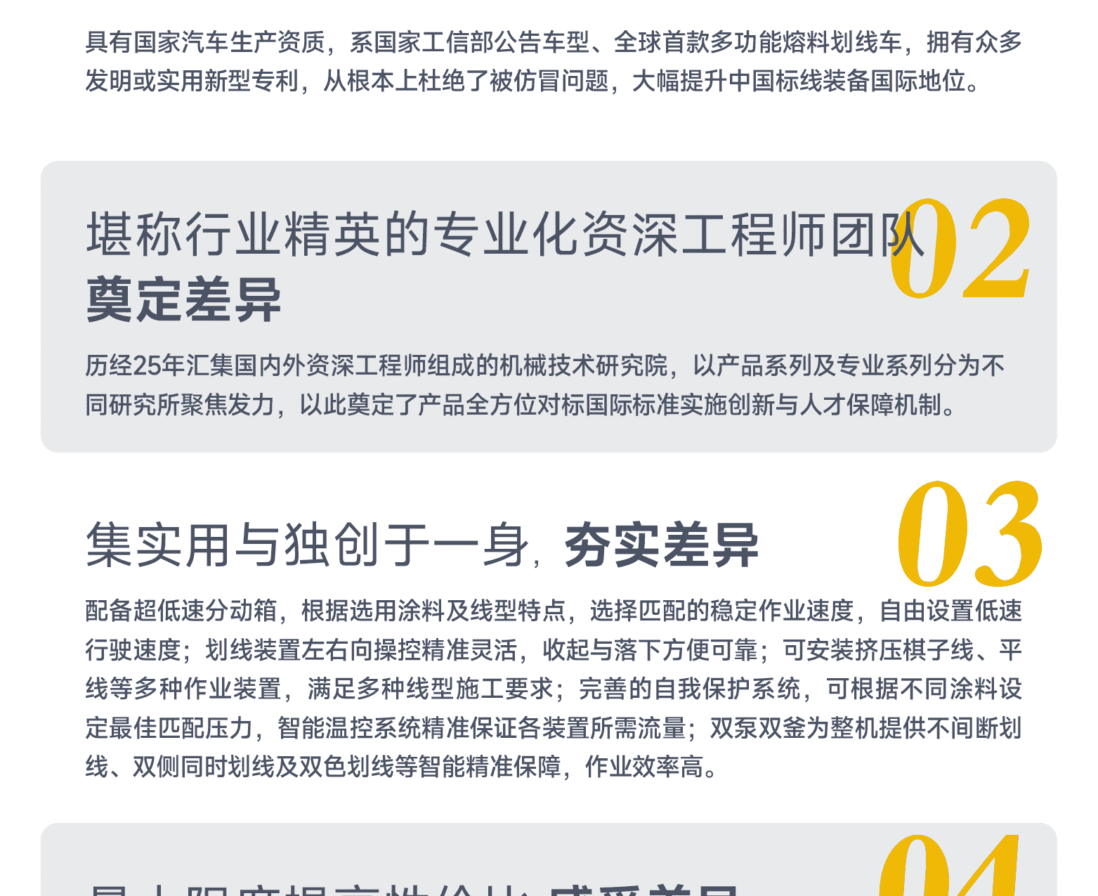 ?專家測評:專利涂料泵(實用新型 2021229326550) 、高效加熱熔料系統(tǒng)、涂料加熱自動溫控系統(tǒng)、可視化智能操作平臺、進口液壓元件。主要特點:集成化程度高;單釜單泵,可雙側劃線;性能卓越,經(jīng)濟高效,操控精準化。