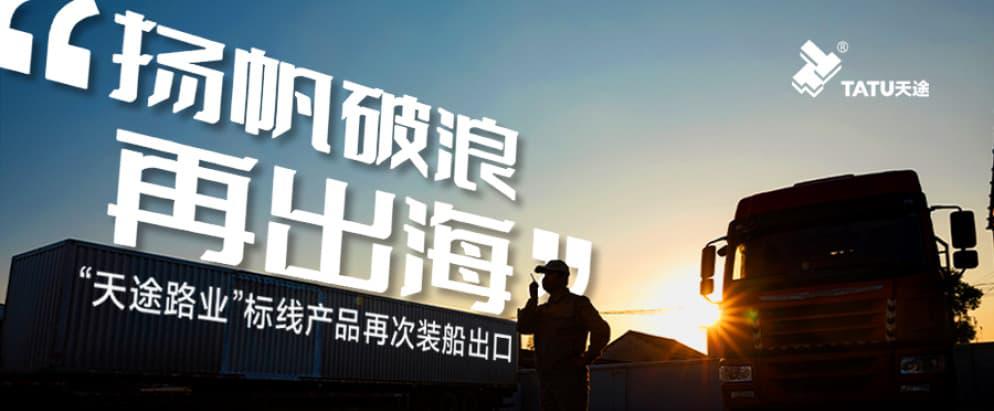 2022年4月15日, 近200噸天途牌國標型熱熔標線涂料和熱熔釜、熱熔手推車等標線產品,在天途鄭州生產基地裝車出口肯尼亞。